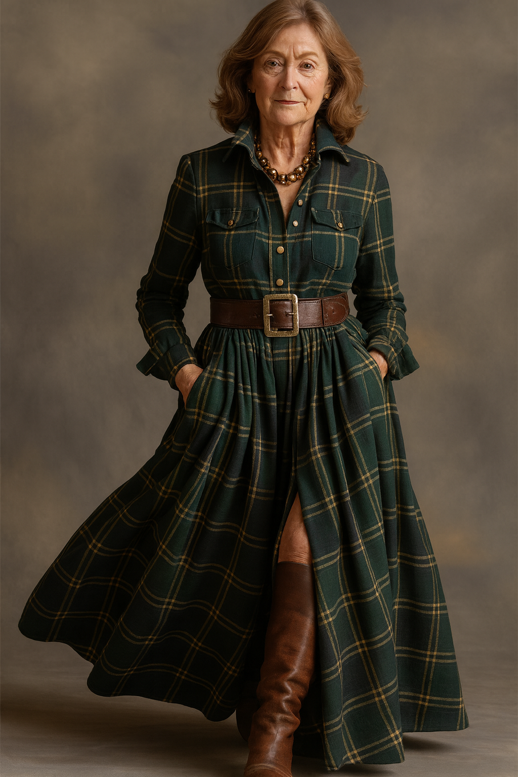 The Scarlett Belted Shirt Dress is designed for women who appreciate classic style with a relaxed, feminine feel. Its softly flowing fabric moves beautifully with every step, while the subtle plaid pattern adds a refined and timeless touch.